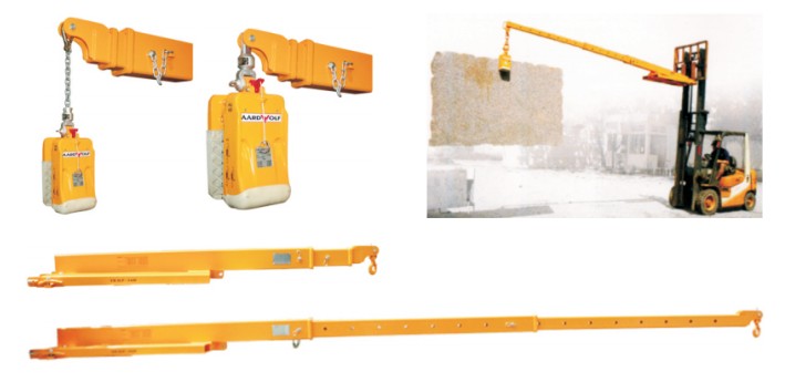 吊臂伸展的設(shè)計使其無法完全被拉出來。吊臂被牢固地安裝在叉車的叉子上,通過兩個固定在叉槽和限制鉚釘?shù)谋巢柯萁z固定,它為司機(jī)提供了多種用途。